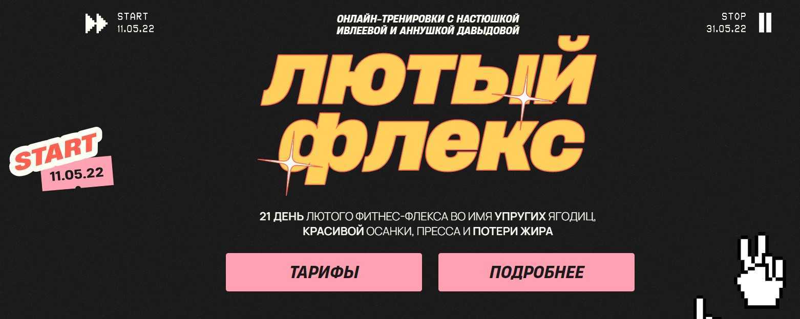 Онлайн-марафоны не обошли стороной и Настю Ивлееву — весной 2022 года вместе с чемпионкой по художественной гимнастике и основательницей фитнес-студий The Flex Анной Давыдовой она запустила марафон по похудению «Лютый флекс».