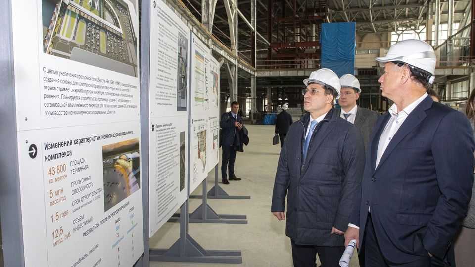 Дмитрий Григоренко и Марат Хуснуллин осмотрели строящийся аэровокзальный комплекс аэропорта Южно-Сахалинска