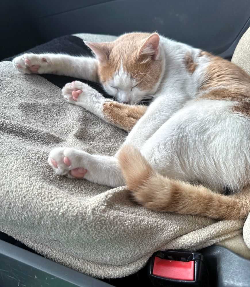 — На первую ночь поставил ему в машине коробку с песком, — рассказал Кирилл. — Позже в Екатеринбурге купил ему лоток, миски и всё необходимое. Кокос в машине сразу освоился. Походил, всё обнюхал и лёг спать на моё спальное место.