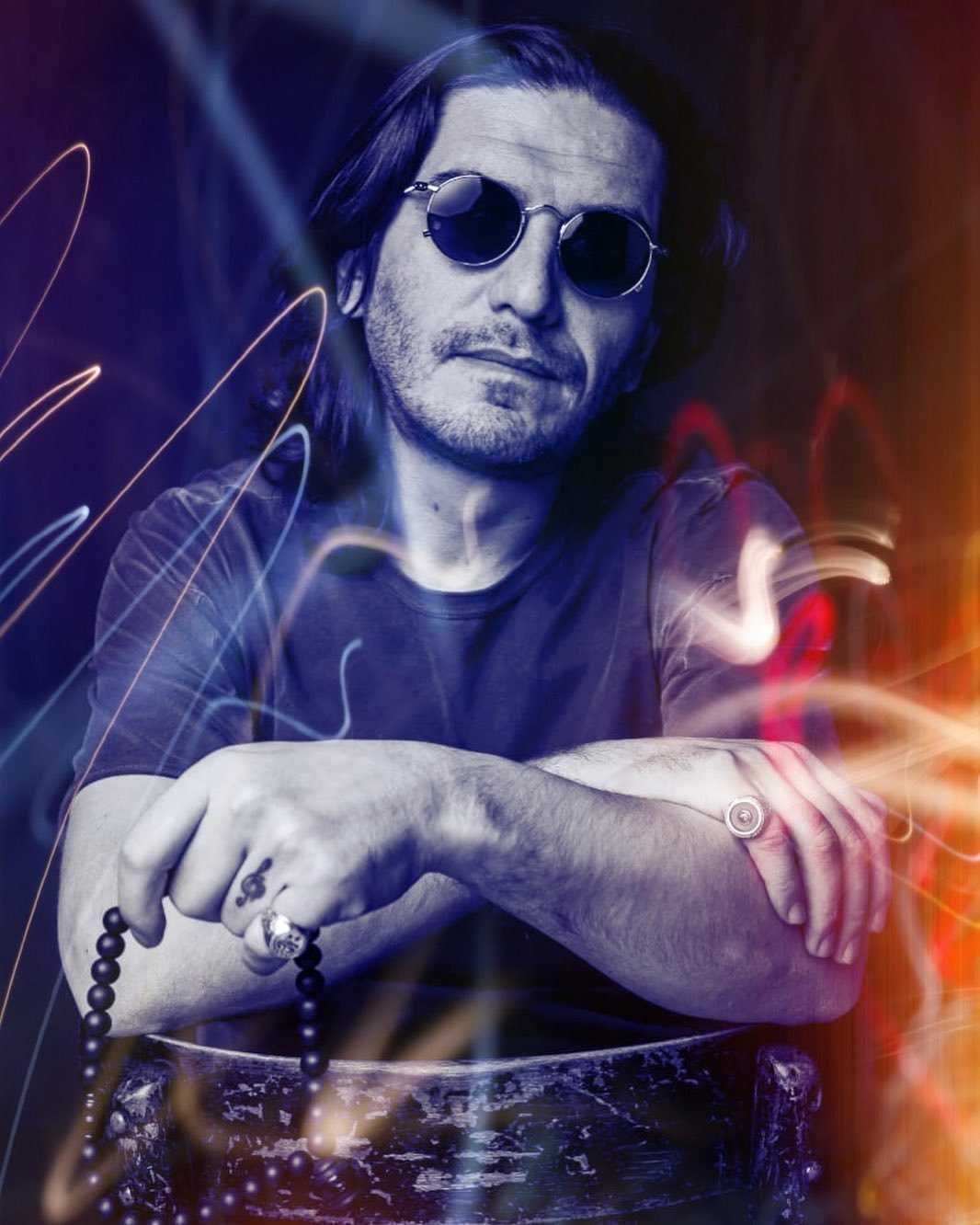 - придерживается романтично-бандитского стиля — волосы до плеч, черные очки, щетина и татуировки;
