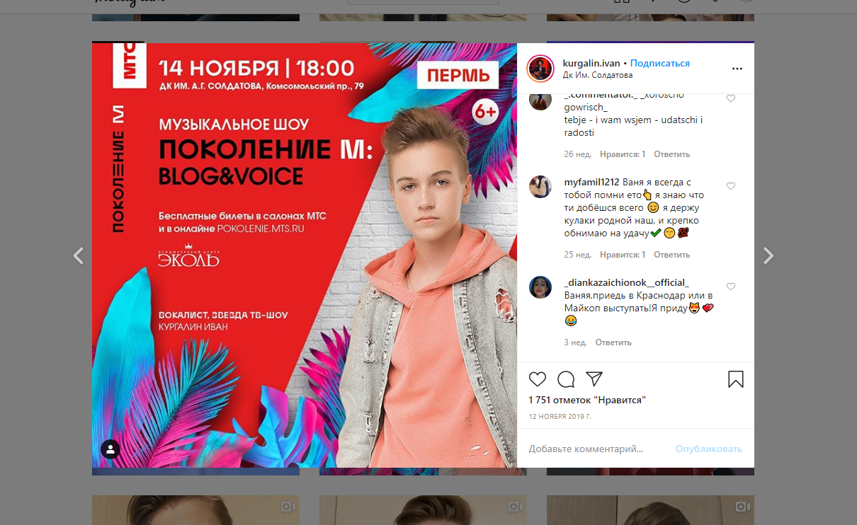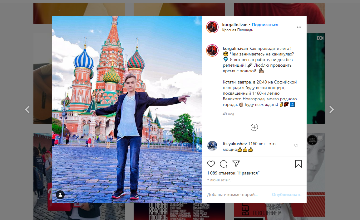 Instagram Ивана Кургалина