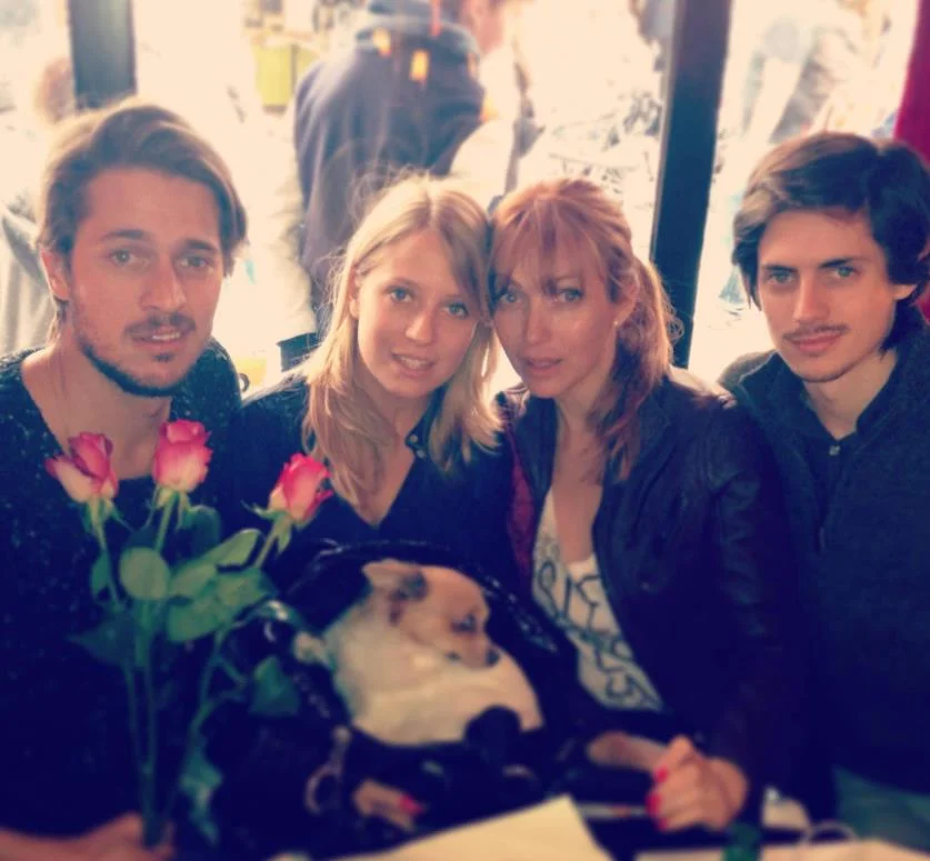 Lucas Bravo with his mother (Eva Bravo) and other family members