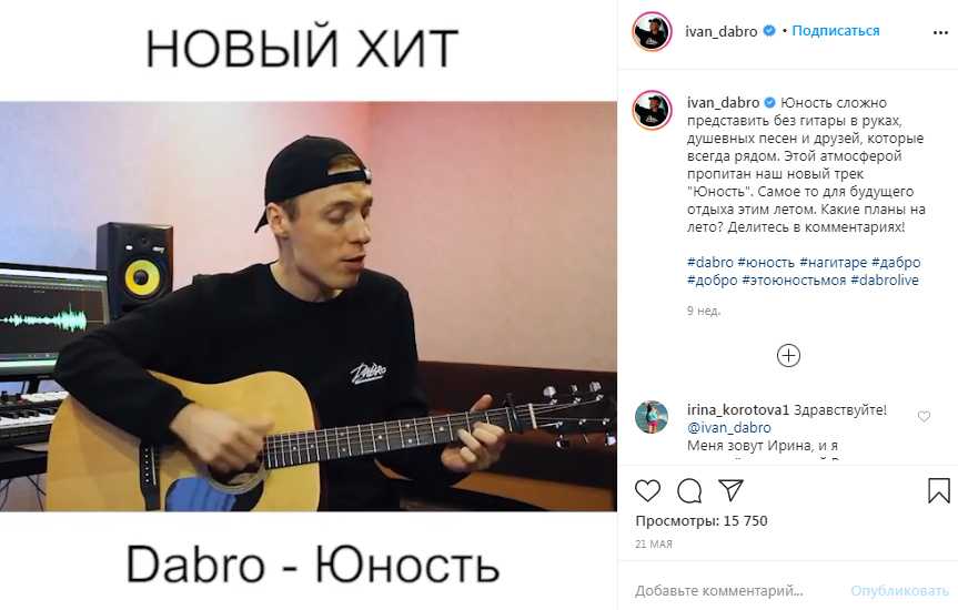 Про свой инстаграм молодой исполнитель тоже не забывал: на его аккаунте до сих пор можно найти каверы на самые популярные песни Макса Коржа, Славы Мэрлоу и Тимы Белорусских.